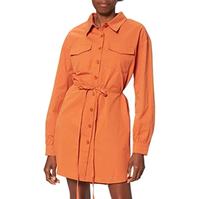 NA KD Women's Oversized Belted Shirt, Orange, 14