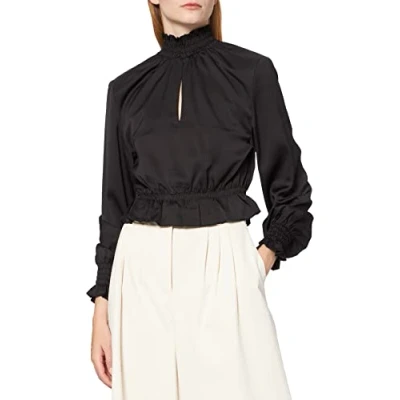 NA KD Women's Padded Shoulder Blouse, Black, 8
