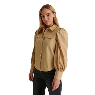 NA KD Women's Puff Sleeve Shirt, Khaki, 12 UK, Green,