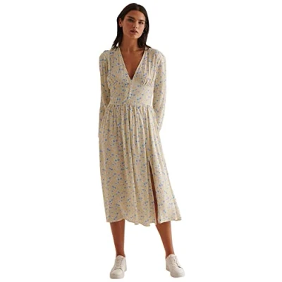 NA KD Women's Side Slit Midi Dress Casual, Yellow Flower, 14