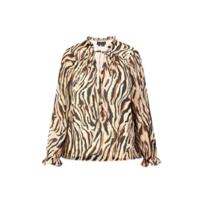 Blouse shirt with leo print V-neck Lace-up Ruffled collar Leo print