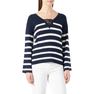 NAF Women's Mumpy Pullover Sweater, Bleu Marine/Ecru, XS