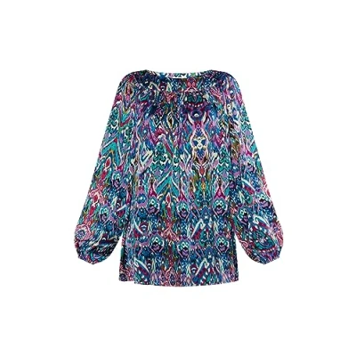 Ikat Print Tunic Flowy, wrinkle-resistant material Boat neckline Balloon sleeves with elastic cuffs