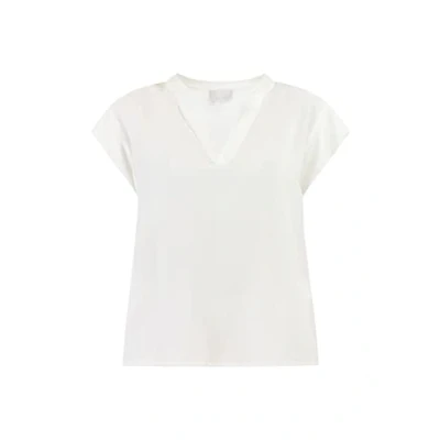 Lightweight top Made from solid viscose V-neck Short sleeves Rounded hem