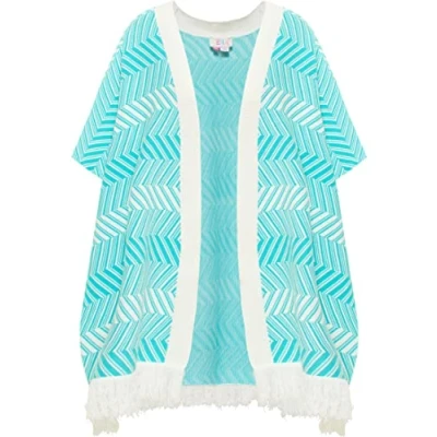 NALLY Women's Knitted Poncho, Aqua White, XL XXL