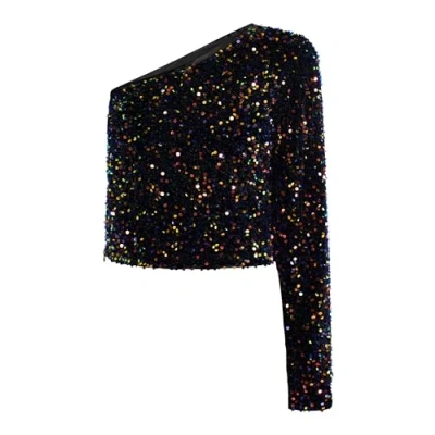 Top with sparkling sequins One shoulder silhouette Cropped silhouette Slim fit Side zip
