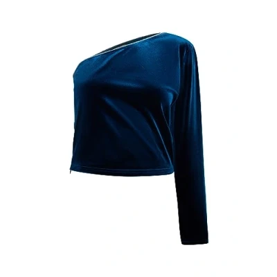 Stretch Velvet Party Top With rhinestones on the neckline Slim, cropped silhouette Side zip