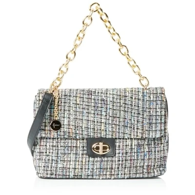 Elegant handbag Made from soft boucle fabric Short handle Zip plus snap closure Textile inner lining with side pocket