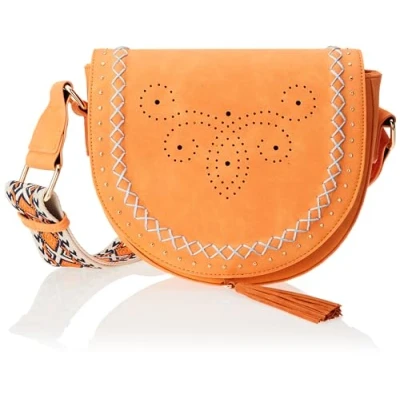 Saddle bag made of imitation leather Decorative stitching on the flap Die cut hole design Long adjustable carrying strap Flap with magnetic closure