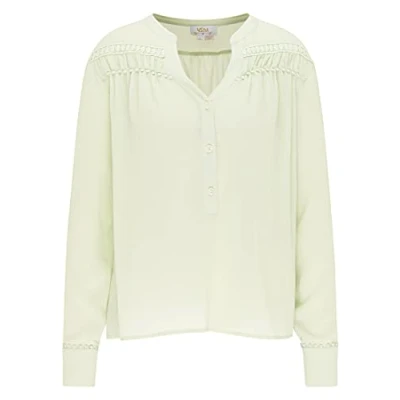 Romantic slip on blouse Soft flowing fabric Delicate crochet lace on cuff and yoke Long sleeve with cuff V-neck with button placket