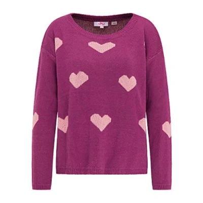 Knitted sweater with hearts Straight shape, slightly oversize Dropped shoulders Classic crew neck Soft yarn with inlay