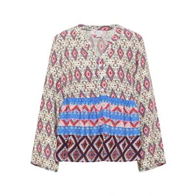 Loose tunic Colourful ethnic print V-neck with button placket Shirred waist seam Long sleeves