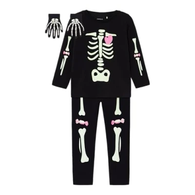 NAME IT Nmnoween Ls Top Set Long Sleeve, Black/Detail:pink, 98