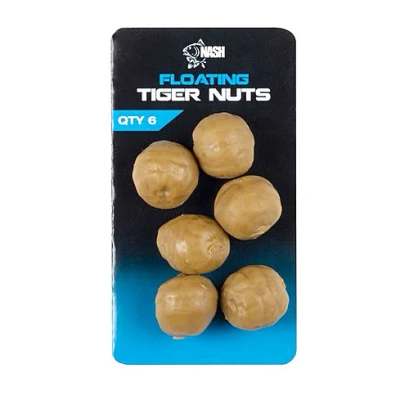 Nash Floating Tigernut - Imitation tiger nuts - Diameter: 12-15mm - Contents: 6 pieces per pack - Floating - Use as hook bait - Enough buoyancy to float hook (size 8-10) - Can be soaked, dipped or coated Floating tiger nuts that perfectly resemble real tiger nuts. The nuts have enough buoyancy to float smaller hook sizes (8-10), while the larger ones are ideal for use as wafter. Can be soaked and dipped in liquids to increase attraction. Contents: 6 per pack.