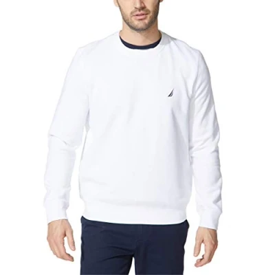 Nautica Men's Basic Crew Neck Fleece Sweatshirt, Bright White, M