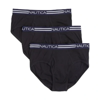 Nautica Men's Classic Cotton 3 Pack Fly Front Briefs, Black, XL