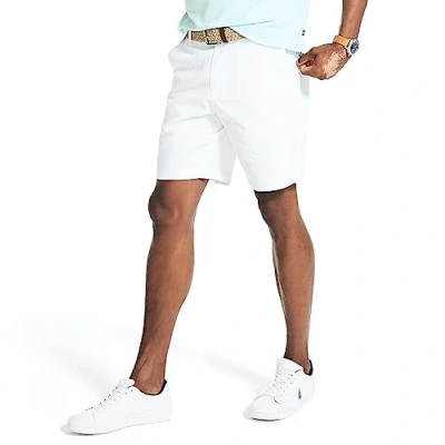 Nautica Men's Classic Fit Flat Front Stretch Solid Chino Deck Short Casual, Bright White, 38