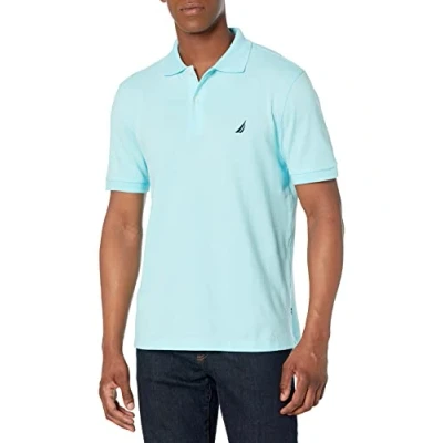 Nautica Men's Short Sleeve Solid Cotton Pique Polo Shirt, Bright Aqua Solid, M