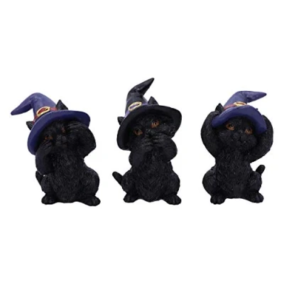 Nemesis Now Three Wise Familiars See No Hear Speak Evil Black Cats Figurine,9.2cm