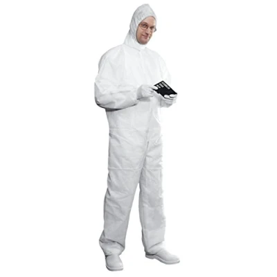Protective suit from antistatic treated non-woven fabric Breathable and tear resistant with covered zip Category 1 for simple protective equipment: Dust Dirty Work industrial cleaning Also suitable for visitors or product Schutz
