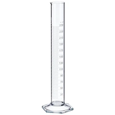 NeoLab E 1267 Measuring Cylinder, Tall pattern, Hex Foot, Class B Borosilicate Glass, 250 ml