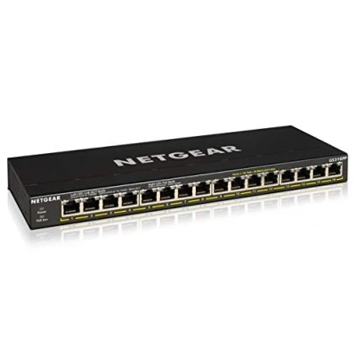 NETGEAR 16 Port PoE Switch (GS316PP) Gigabit Ethernet Unmanaged Network Powered with x PoE+ @ 183W Desktop or Wall Mount