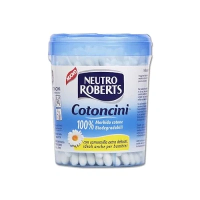 Ideal for adults and children and for the right daily hygiene Neutro Roberts cotton with 100% pure, soft cotton retains its strength and respects the delicate ears cotton swabs with chamomile, super gentle for proper personal hygiene. These grinding stones are biodegradable with a rod made of cardboard. . Practical hygienic box with practical and quick opening for quick and proper use. Neutro Roberts has always been experts for softness and softness, care for all skin, even for the most sensitive skin