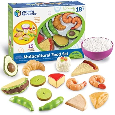 Strong, brightly colored pieces immediately appeal to kids Contributes to developing vocabulary, language and social skills Encourages imaginative play Soft plastic and rubber play pieces are easy for little hands to hold Includes 15 foods from different cultures, Manufacturer: Learning Resources