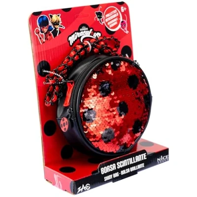 MIRACULOUS SEQUINS BAG: This bag is made of quality materials, with 1 main compartment that can hold different items. Can be used as a walking bag, leisure bag, storage bag. FEATURES: The Miraculous Lady Bug bag in the shape of a pouch features a main zip opening pocket. The cover of the bag is fabric with reversible sequins that resemble the ladybug animal. The shoulder strap is adjustable in length and can be carried by hand thanks to the practical pearl handle on the top. DIMENSIONS: 18.5cm x 23.5cm x 6cm Original Miraculous By Product Nice Group. Recommended age: 6+, Manufacturer: Nice SRL
