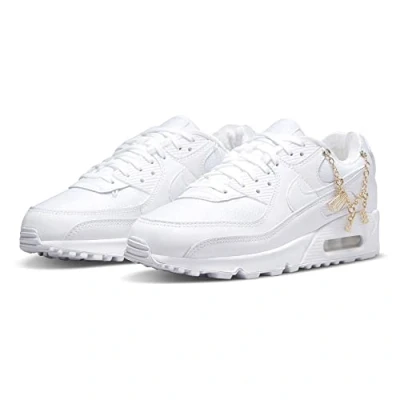 Nike Sportswear AIR MAX 90 Trainers white/metallic gold Sale at Zalando.ie | Upper material: imitation leather/ textile/Lining: textile/Sole: synthetics/Insole: textile | Sale order at Zalando.ie! Size: 4. Color: White/metallic gold. Pattern: plain.