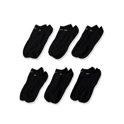 Nike Performance Everyday Lightweight 6 PACK Trainer socks, Size: 11 14.5, Black/white