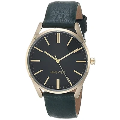 Domed mineral crystal lens Green sunray dial with gold-tone hands and markers Green strap with buckle closure Not water resistant