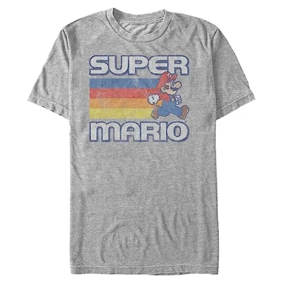 Nintendo Men's Super Mario Running Retro Stripe T Shirt, Athletic Heather, L