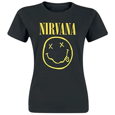 Nirvana Smiley Logo Women T Shirt Black, Regular, L