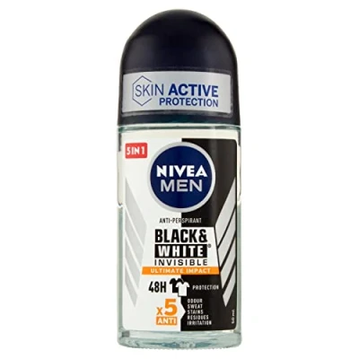 72H protection: the antiperspirant deodorant provides long-lasting protection for up to 72 hours and reduces the formation of yellow tones on light textiles and white residue on dark textiles 5-in-1 effect: the Nivea Black & White deodorant effectively regulates perspiration and provides excellent 5-in-1 protection against odours, sweat, residue, irritation and stains Male fragrance - Start the day by shaking the intense masculine fragrance of the deodorant roll-on and discover a fresh skin feeling all day long SKIN FRIENDLY - The deodorant without ethyl alcohol and dermatestat regulates perspiration without irritation, for effective but gentle protection, ideal for everyday use Box contents: NIVEA MEN black and white invisible roll-on antiperspirant armpits, deodorant for acid sweating against stains, 1 x 50 ml, item number: 85392