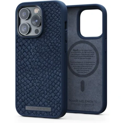 NJORD COQUE MAGSAFE CUIR DE SAUMON IPHONE 14 PRO MAX BLEU