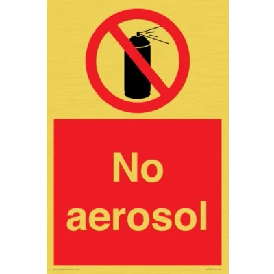 P906 : No aerosol This sign is made from vinyl gold sticker Gold metal effect sticker for flat, clean surfaces. Not for rough, plastic, or dusty surfaces. A4 portrait Sign Text: No aerosol
