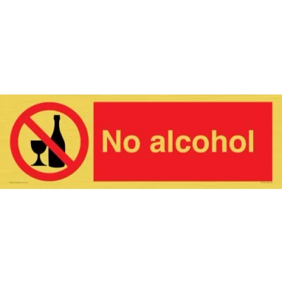 P907 : No alcohol This sign is made from vinyl gold sticker Gold metal effect sticker for flat, clean surfaces. Not for rough, plastic, or dusty surfaces. 62 landscape Sign Text: No alcohol