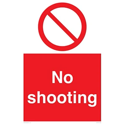 P001 : General Prohibition This sign is made from vinyl / sticker Air Release vinyl makes it easy to stick to flat, clean surfaces without bubbles. Not for rough, plastic or dusty surfaces. A2 portrait Sign Text: No shooting