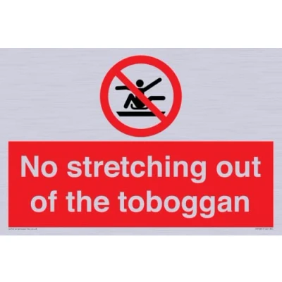 P046 : Do not stretch out of toboggan This sign is made from vinyl silver sticker A4 landscape Sign Text: No stretching out of the toboggan