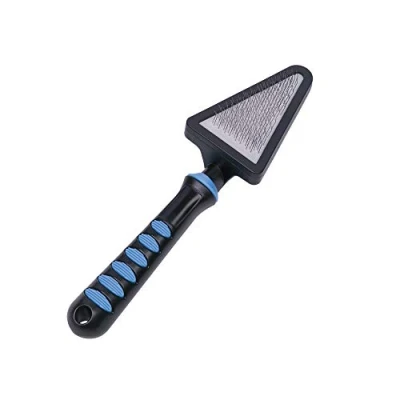 Comfortable for humans and animals thanks to the ergonomic handle Triangular For hard to reach fur areas Gently removes undercoat and loose hair