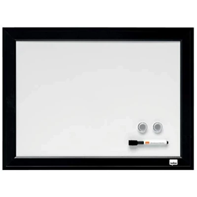 Small dry wipe magnetic whiteboard is ideal as a versatile memo board and organiser for the whole family, with a contemporary black wood frame Wall mounted daily organiser to keep bills, work deadlines, tickets, reminders, meeting notices, activities, clubs, schedules and meal plans all in one handy place Includes wall fixing kit for simple and secure wall mounting in either portrait or landscape orientation, also supplied with a whiteboard pen and whiteboard magnets The contemporary black wooden frame allows the board to fit seamlessly into any décor, whether it’s in a bedroom, study, office, kitchen or playroom Contents: 1 x Nobo Small Magnetic Whiteboard with Black Frame, dimensions: (H x W) 585 x 430 mm, Weight: 1.38kg, Includes 1 x Marker Pen with Eraser Cap, 2 x Magnets, Foam Adhesive Mounting Pads & Mounting Magnets, 1903785