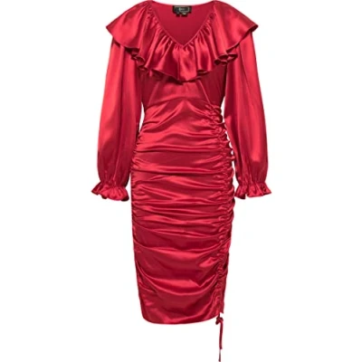Refined dress with ruffles Smocked side and back panel Silky satin look Front gathered hem