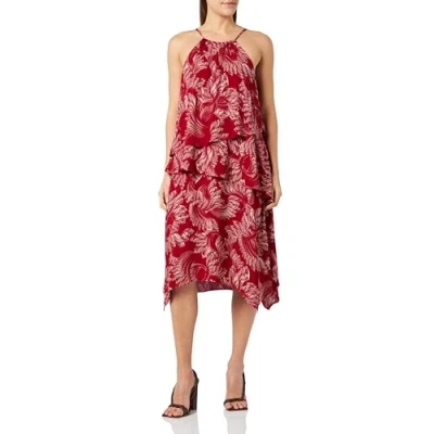 Lightweight dress with all-over print Asymmetrical layers Small V-neck Small hook at the neck Loose silhouette