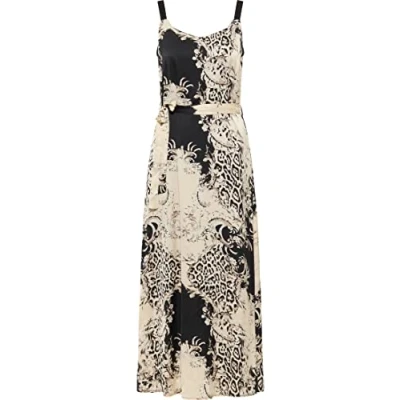 Elegant maxi dress Renaissance and animal print With tie belt Concealed zip High side slits