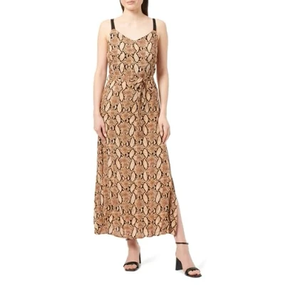 Elegant maxi dress All-over snake print With tie belt Concealed zip High side slits