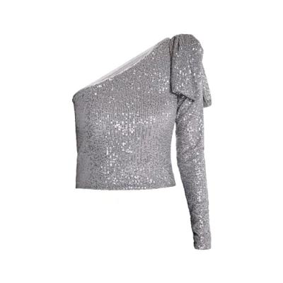 One Shoulder Top Stretch material All-over sequins Sequin bow on shoulder Figure-hugging fit