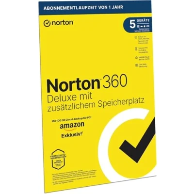 Norton 360 Deluxe with Extra Large Backup Capacity Amazon Exclusive* 50GB Additional Cloud Storage. Antivirus Software for 5 Devices and One Year Runtime