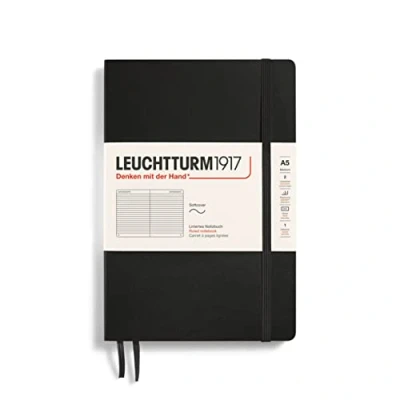 MEDIUM (A5) soft cover lined black 121 numbered pages Soft cover page marker elastic band fastener