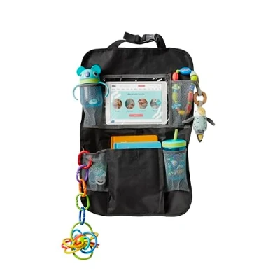 Nuby Car Seat Organizer Clear Tablet Pouch Adjustable Straps for Universal Compatibility Multiple Pockets